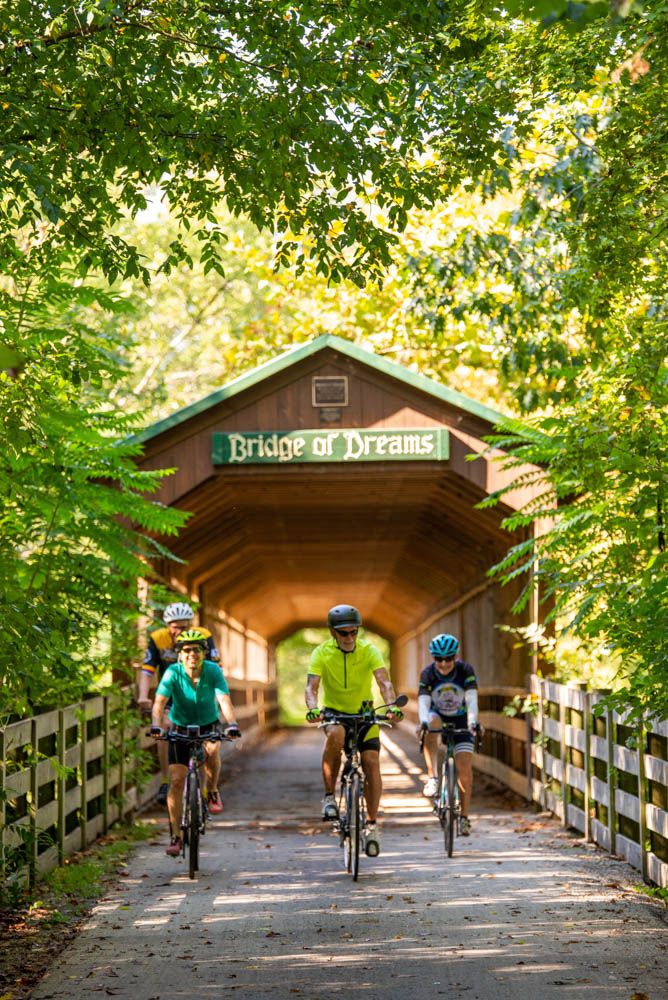 Meet your guides and fellow riders in Cincinnati. Today you’ll ride the Little Miami Scenic Trail to the town of Xenia. We have a fifteen-minute shuttle to Yellow Springs, and you’ll have a chance to check out this quirky midwestern town.