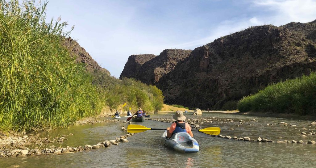 You can’t come to Big Bend without getting up close to the mountains- without putting your hiking boots down in the dirt and wandering through the deep valley of the Chisos Mountains, or paddling on top of the famous Rio Grande, winding through towering canyons above. These experiences, in tandem with amazing bike riding, create a truly wild and multi-faceted outdoor vacation. On the trail, we hike the Chisos Basin as Mexican bluebirds dart across our path, surrounded by rugged red cliffs and towering mesas until a “window view” opens to the rolling desert ridges below—a perfect moment to stretch our legs and share conversations with new friends. We also paddle the Rio Grande with local guides who know the river intimately, scouting its flow and sharing insights on the surrounding flora, fauna, and the watershed’s fragile future. With my years of outdoor guiding, paddling here feels legendary—both for its geological significance and the care needed to protect this iconic river.